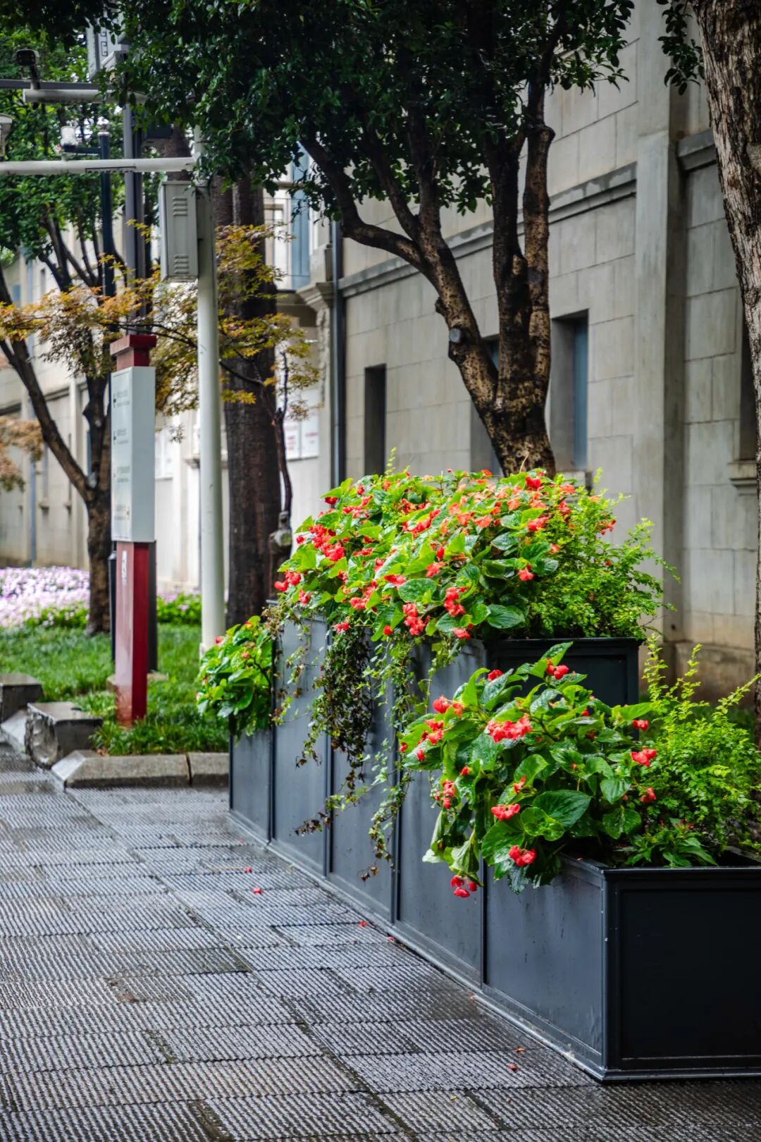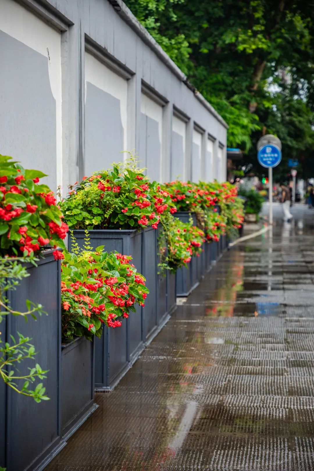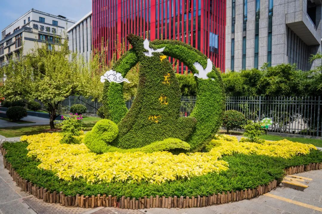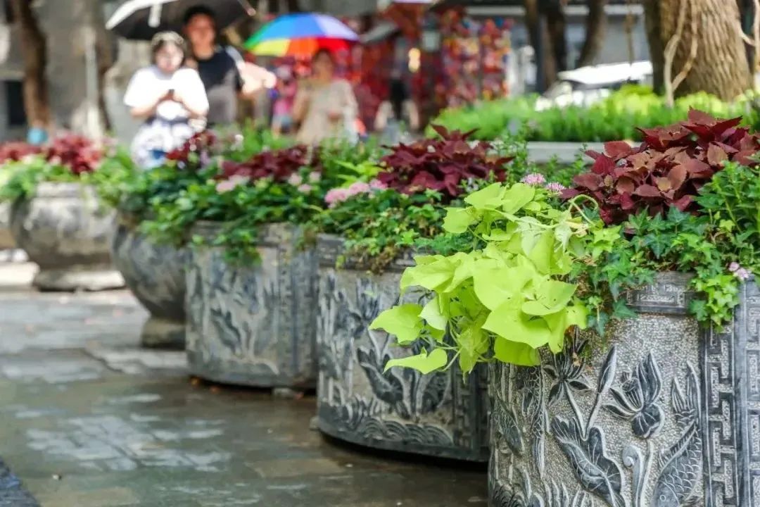 都府堤沿线的花箱,一组组精美的主题花箱,营造出百花竞艳的景观效果,与景区红色文化相得益彰。