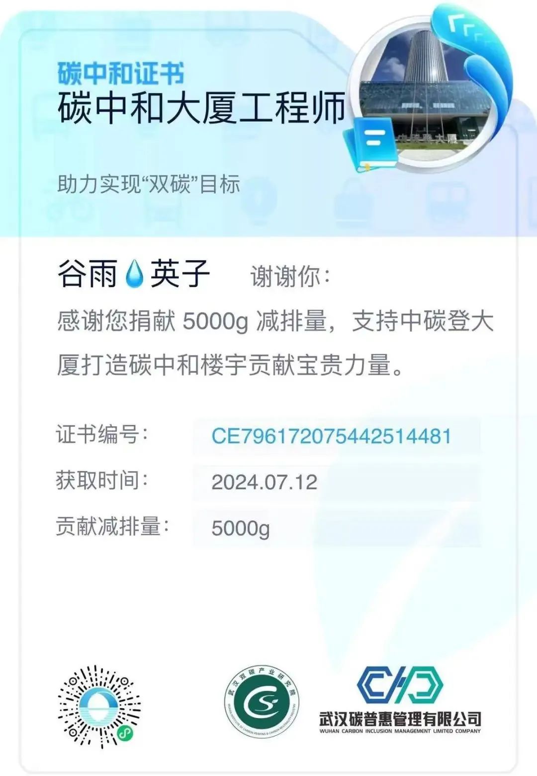 “一年攒一吨。”这是她给自己设定的目标。要实现这一目标,还需要更多的低碳生活场景。接下来,充电桩、顺风车、二手物品交易等减排场景也将纳入“武碳江湖”。