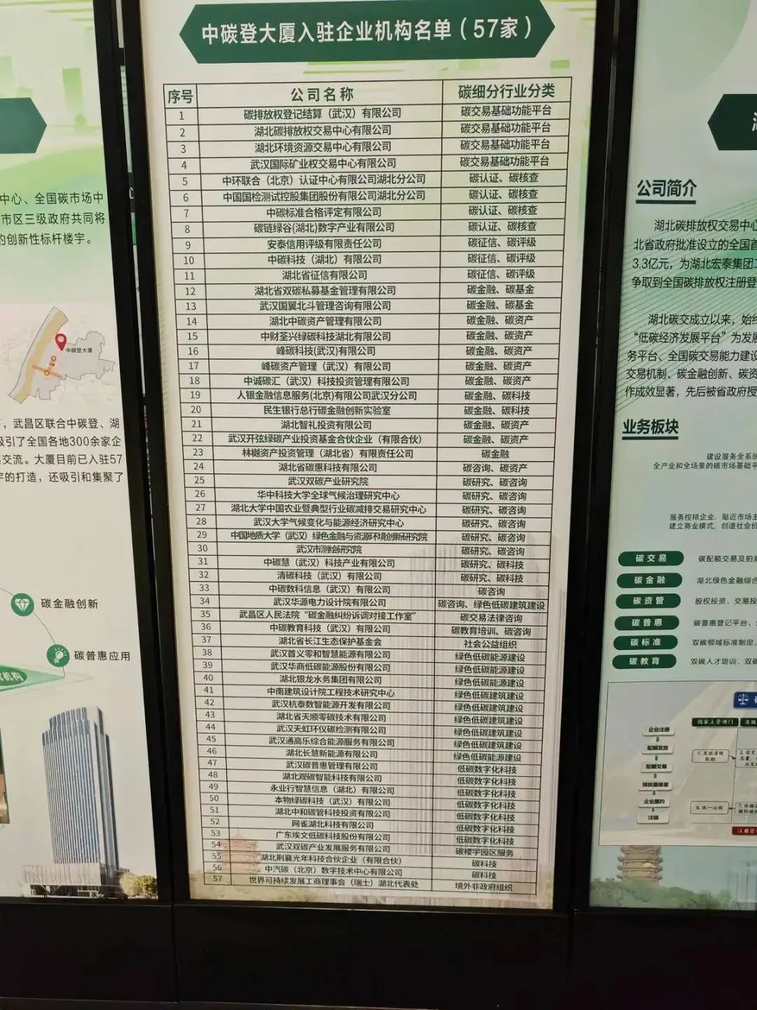 武昌区致力于打造以中碳登大厦为核心载体的碳金融集聚空间,随着中碳登、中碳科技等涉碳企业入驻,57家头部企业和机构已入驻中碳登大厦,涉及碳交易服务、碳资产管理、碳金融创新、碳科技转化等细分领域,200余家涉碳机构、企业落户武昌,全国碳金融集聚区建设成势见效。