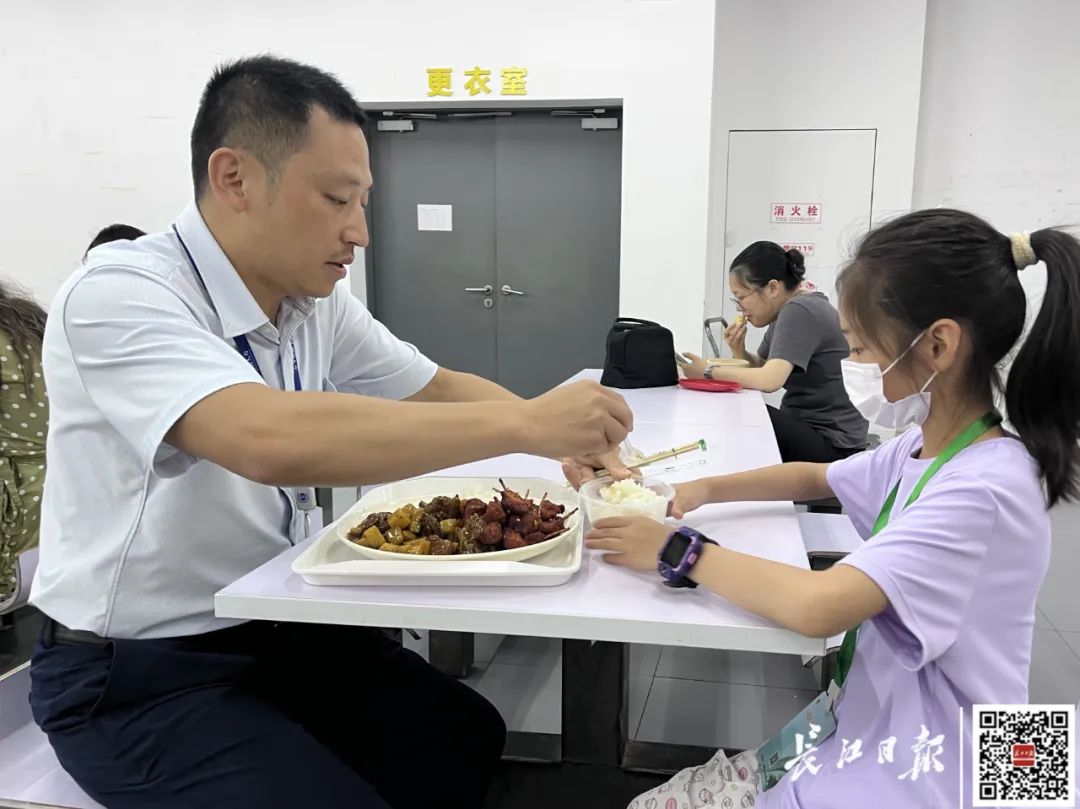 7月18日中午12时,在武昌区保利广场写字楼上班的李帜乘电梯来到位于45楼的免费楼宇托管班,接到刚下课的女儿李悦嘉后,他准备带女儿去楼宇里的白领食堂吃午饭。