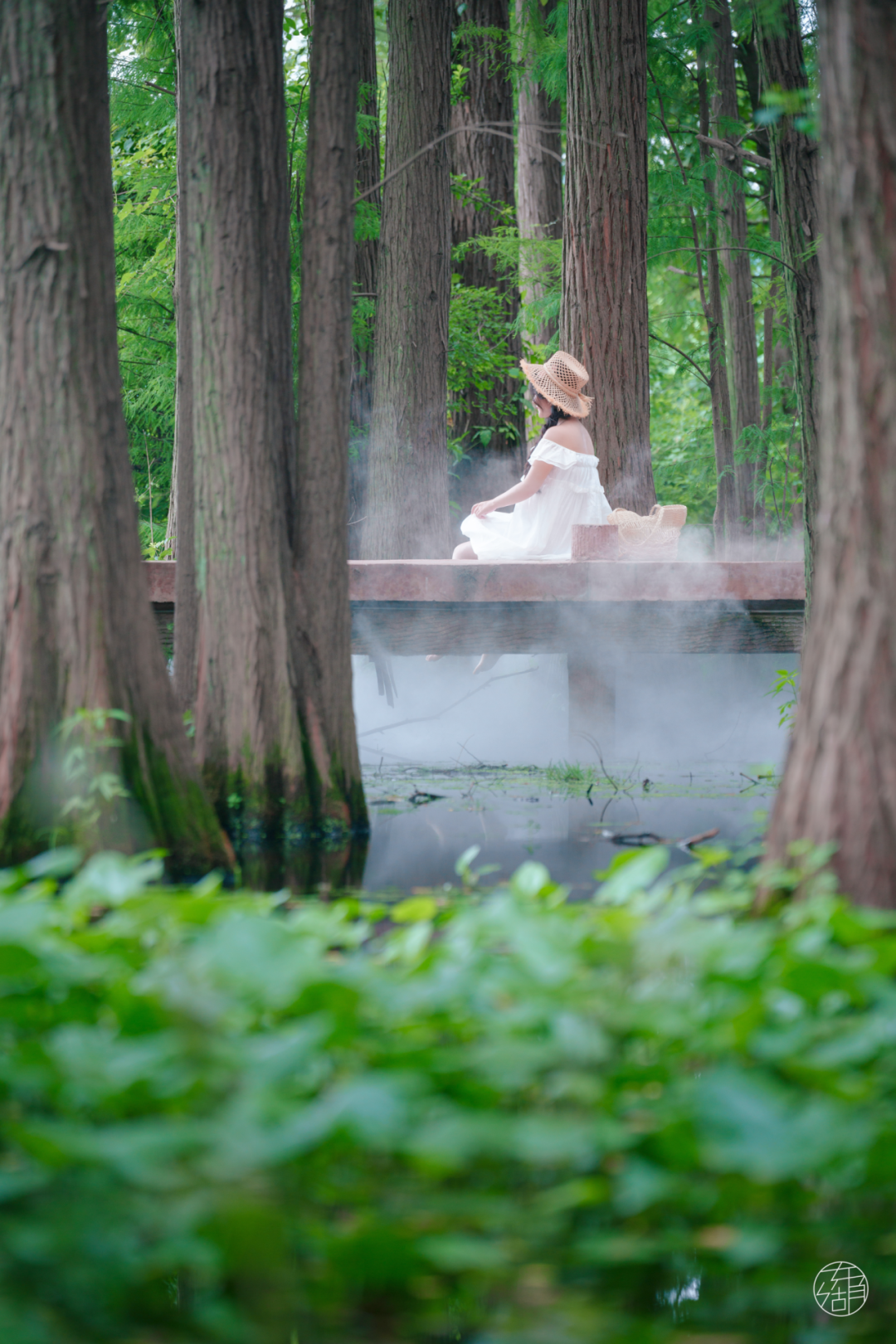 盛夏炎炎,坐在栈桥边慢享这难得的惬意,又或者行进在被延绵池杉包围的「绿色长廊」之上,脚下水雾飘渺,不觉间,便融入了一幅绿意盎然的美妙画卷。