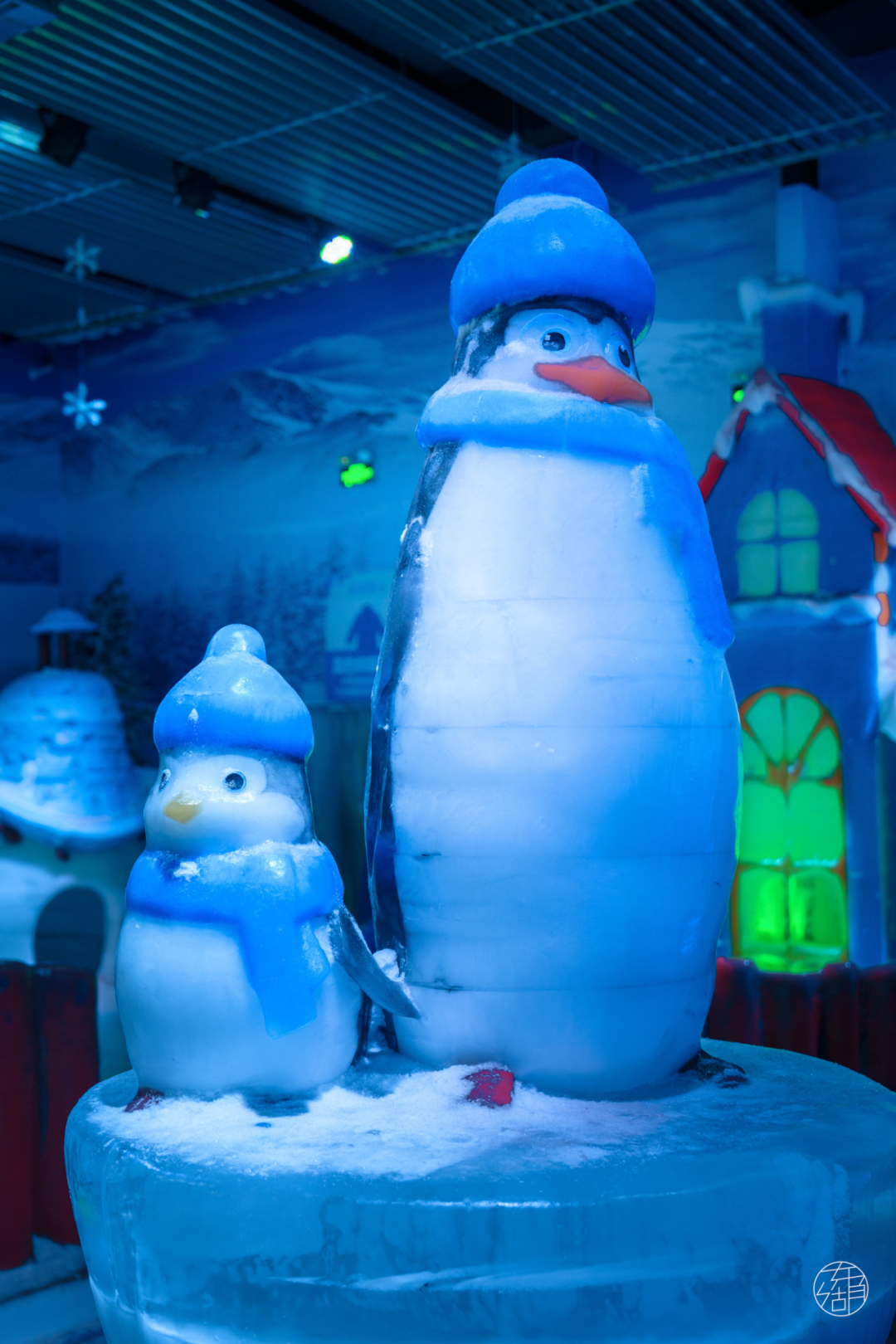 整个场馆都由冰雪搭建而成,白雪皑皑的冰山,可爱无比的雪人,活灵活现的企鹅和北极熊……