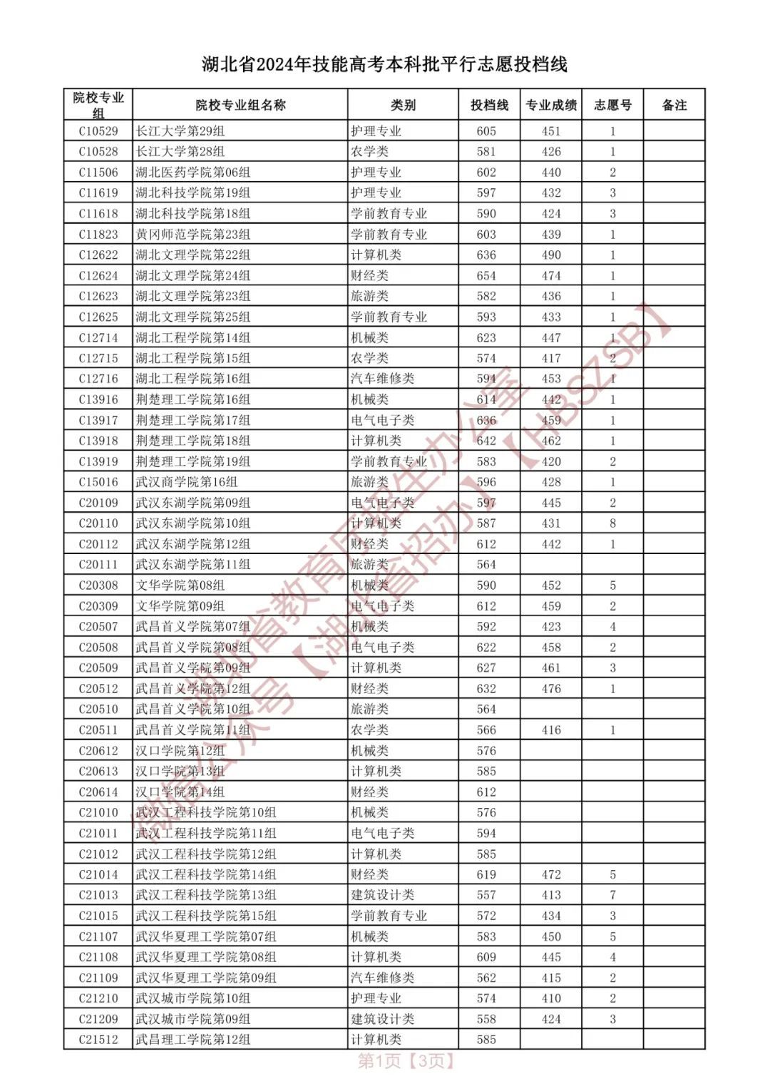 湖北省2024年本科普通批录取院校(首选历史)平行志愿投档线(扫码查看)