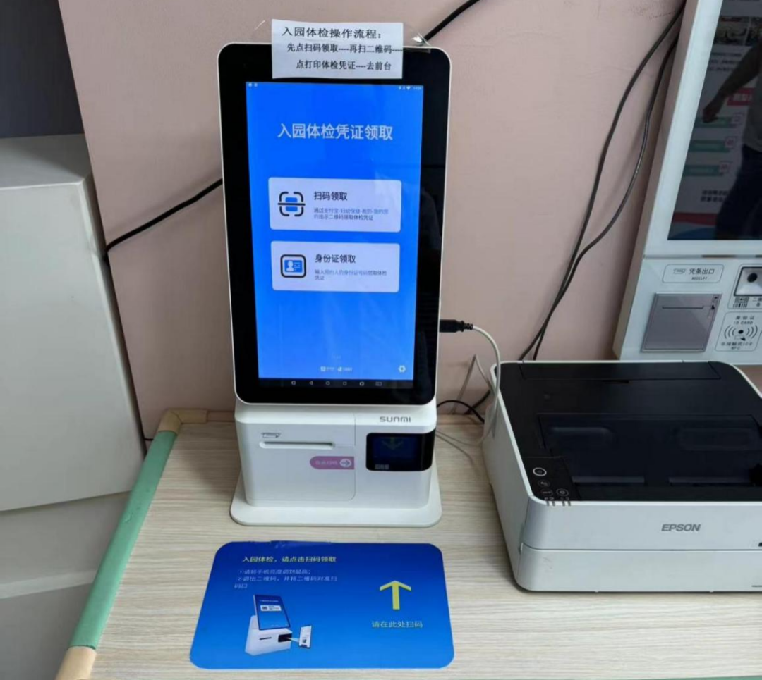 (2)在支付宝自助打印机前扫描手机支付宝中的“预约二维码”或输入预约时填报的儿童身份证号码打印体检表,然后到导医台开具体检发票。