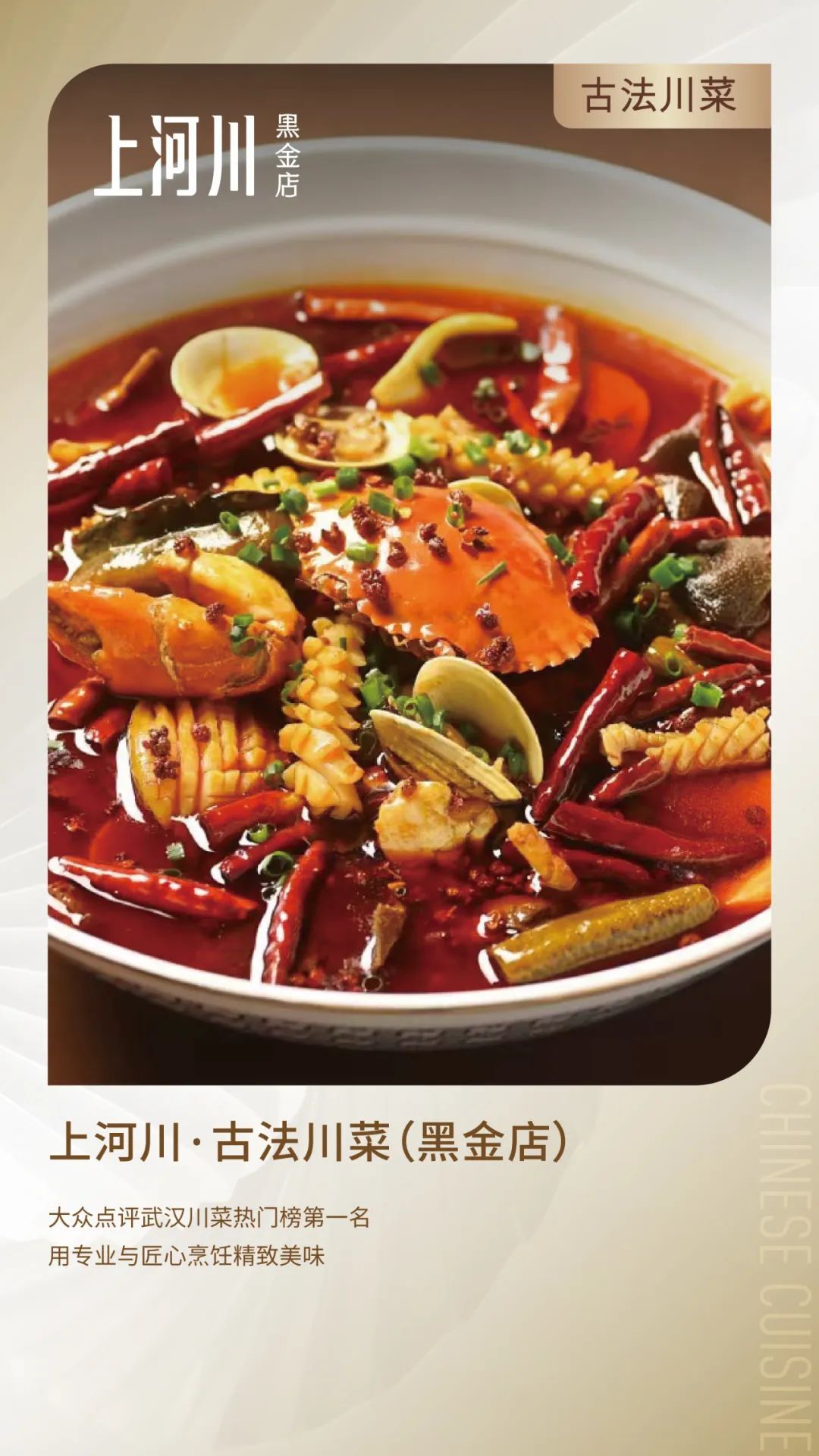 喜欢吃辣的也别错过最地道的湘楚美食—渔家新湘菜楚湘芙蓉;以及人气川菜品牌上河川·古法川菜的经典菜肴。