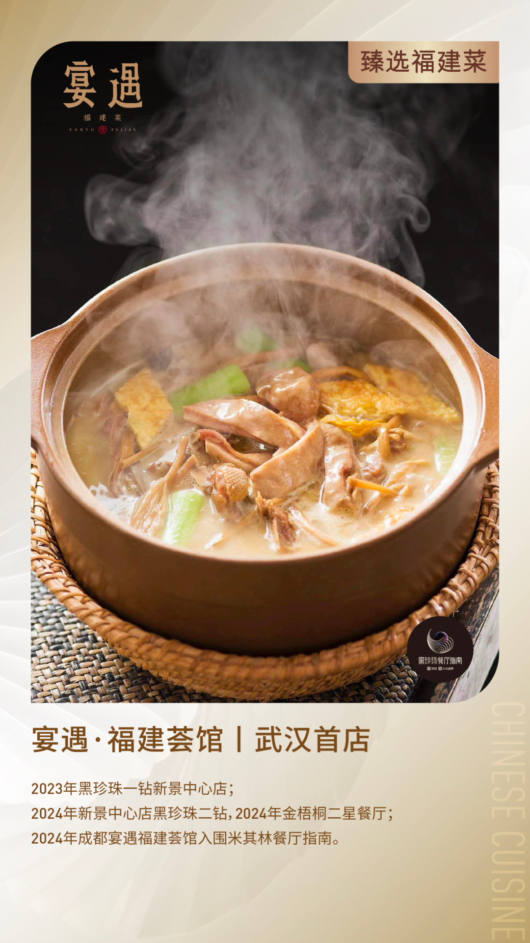 你还可以从专注闽菜的宴遇·福建荟馆领略福建菜山海合味的登峰造极;云南菜餐厅一坐一忘从云南空运而来的新鲜到极致的云南味道。精致楚味餐厅楚玲珑更适合多人的不同口味,集南北各派精华,让精致不止与食材本身;