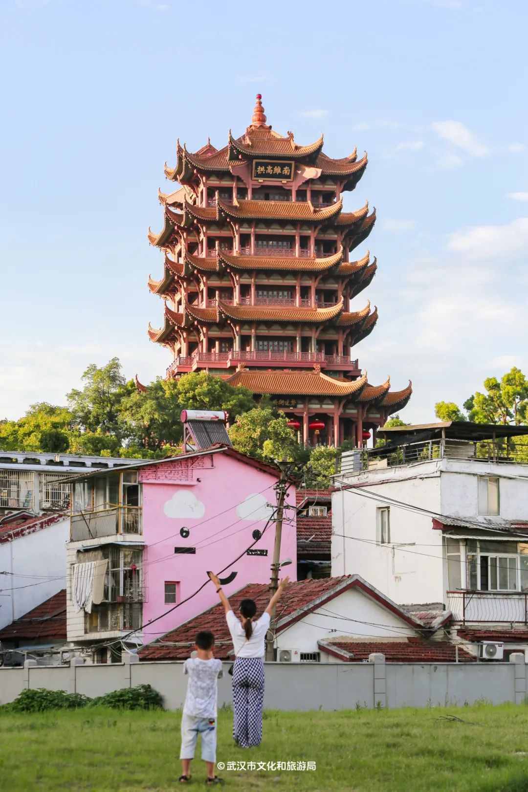 云朵粉墙“一毛”位于地铁5号线「彭刘杨路站」B2出口这里有片绿茸茸的草地空间视野广阔一览黄鹤楼的全貌拍照不排队▽