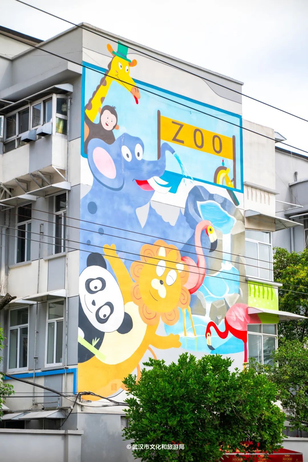 两侧居民楼外墙,加油站和停车场的围墙上都绘满了活灵活现的动物。乘坐公交至「动物园路墨水湖北路口站」,可直达。