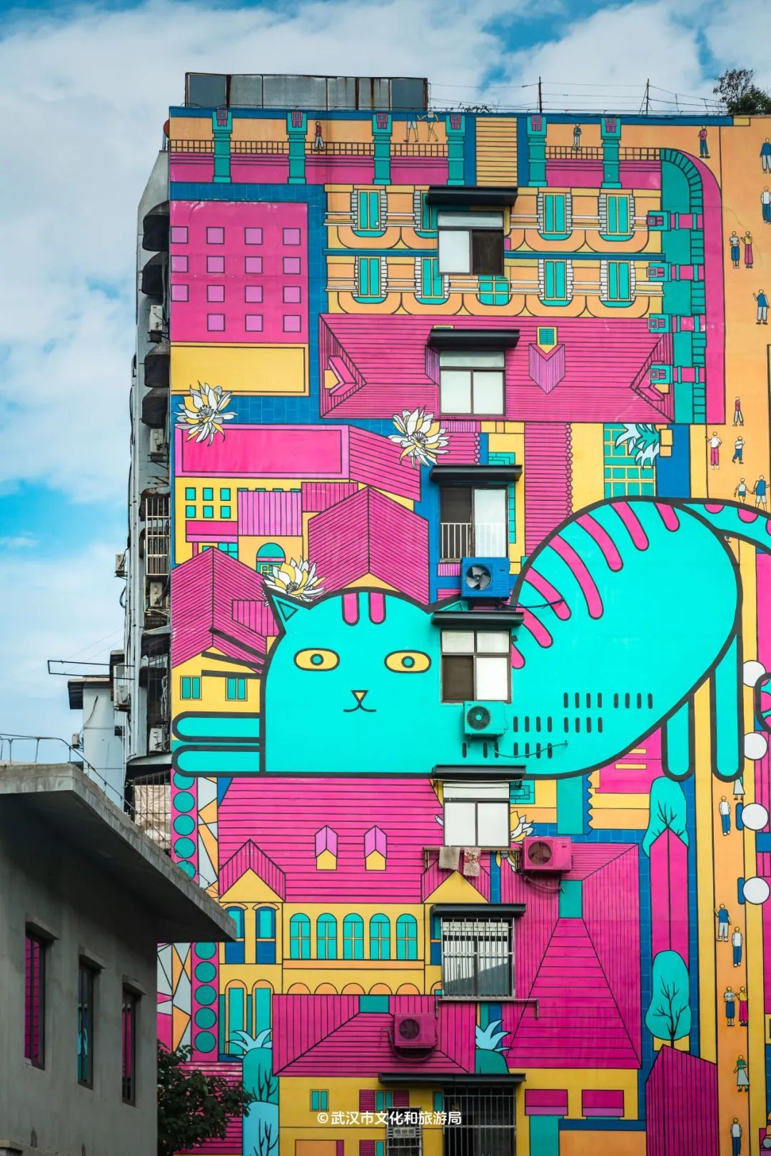 △位于古德寺路。武汉育才美术高中学生对古德寺路的墙面进行爆改,在墙上对武汉大声告白。这里连着多面外墙都是高颜值涂鸦。