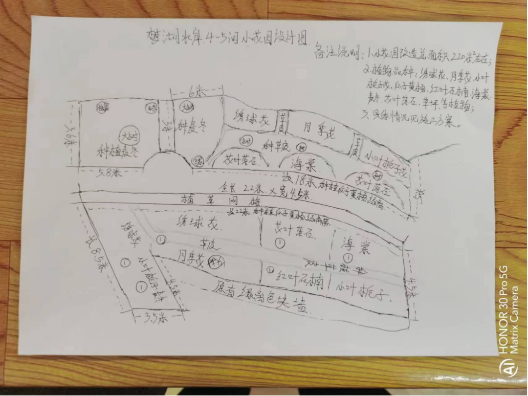 ▲绿化专家指导绿植养护、居民手绘花园设计图