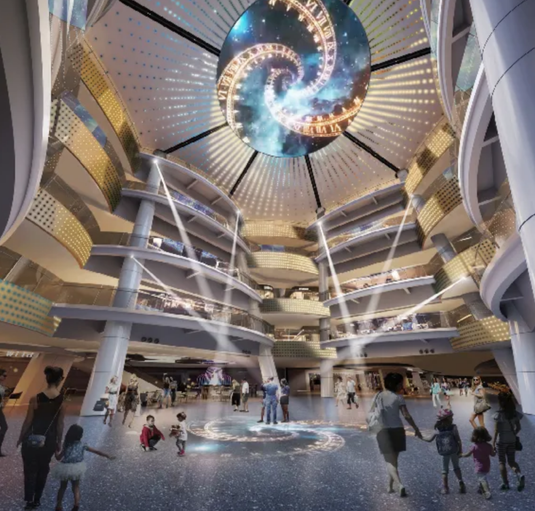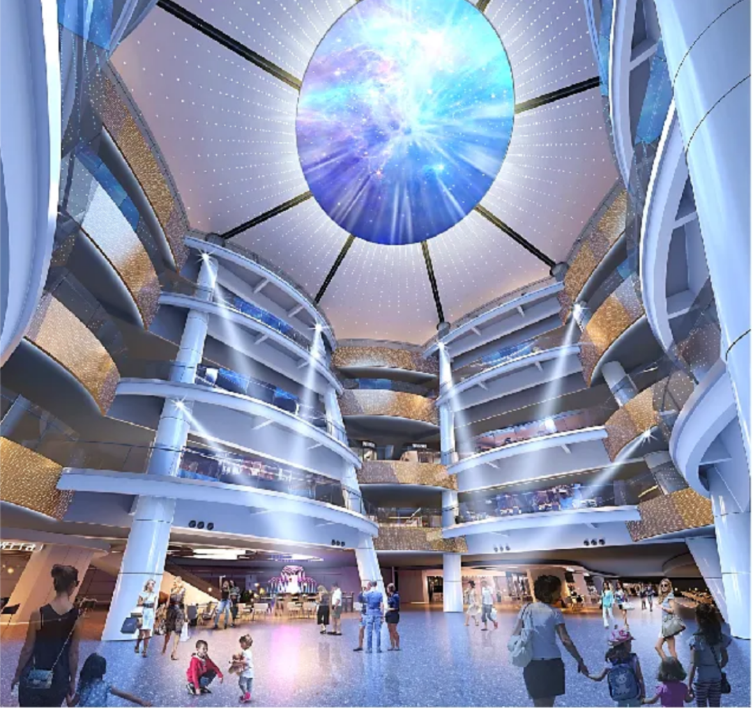商场内,以“日月星辰”“海洋天堂”“大千世界”三大主题打造的光影流动空间,俨然成为浩瀚的宇宙世界,白天,中庭穹顶上演奇景光影秀,夜晚,沉浸式感受灿烂星河,浪漫感满满。