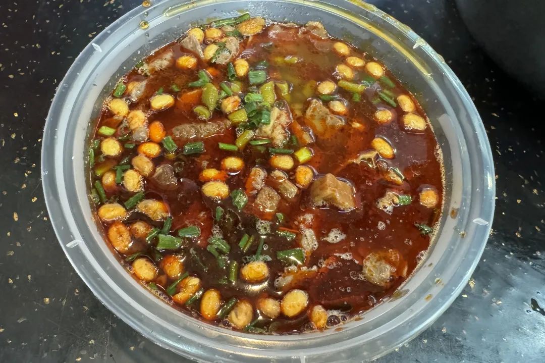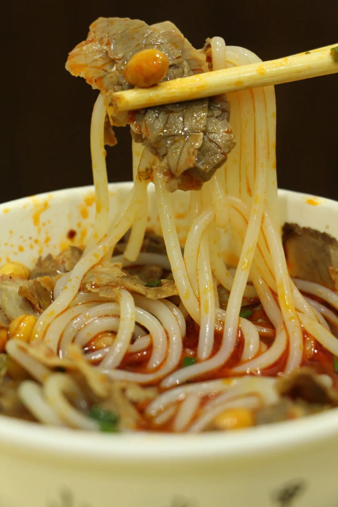 卤水油汪汪的,和着米粉入口,辣劲冲得人面色潮红,额头冒出一层细汗。吃一口粉,两块肉,喝一口汤,浓郁却不油腻的口感,最大化激活味蕾,好吃到不行!