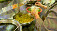每天清晨,粮道街开始热闹起来,上班的街坊,上学的小孩,都慢慢聚集到这家店来,小店一下子就热火朝天。买了票,排着队,在操作间前,等待着那一碗米粉。