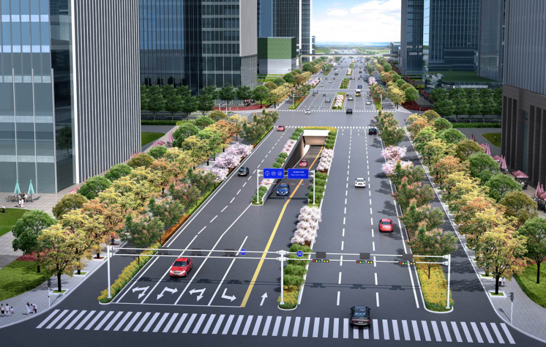 项目全线严格践行精细化施工要求,采用深层搅拌桩、土工格栅等先进的软基处理技术,确保路基的稳定性和道路质量,施工过程中加强监测与控制,及时调整施工参数,打造无障碍慢行交通,真正做到道口“零高差”,人行道与非机动车道衔接平缓。值得一提的是,武车四路还是一条“无线”道路,强电、通信等杆线均采用入地处理,同时,武昌滨江统一采用智慧路灯设计,实行“多杆合一”共建模式,将交通设施与智慧路灯杆件合并设置,风格统一、美观。