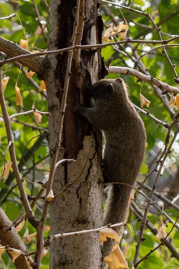 △小编是观鸟初学者,小半天就在蛇山拍到10多种鸟,甚至还偶遇小松鼠。图中从左至右、从上到下依次为白头鹎(bēi)、黑尾蜡嘴雀(雌)、黑脸噪鹛、领雀嘴鹎、灰喜鹊、山斑鸠、雀鸲(qú)、金翅雀及松鼠(摄影@王朝阳)