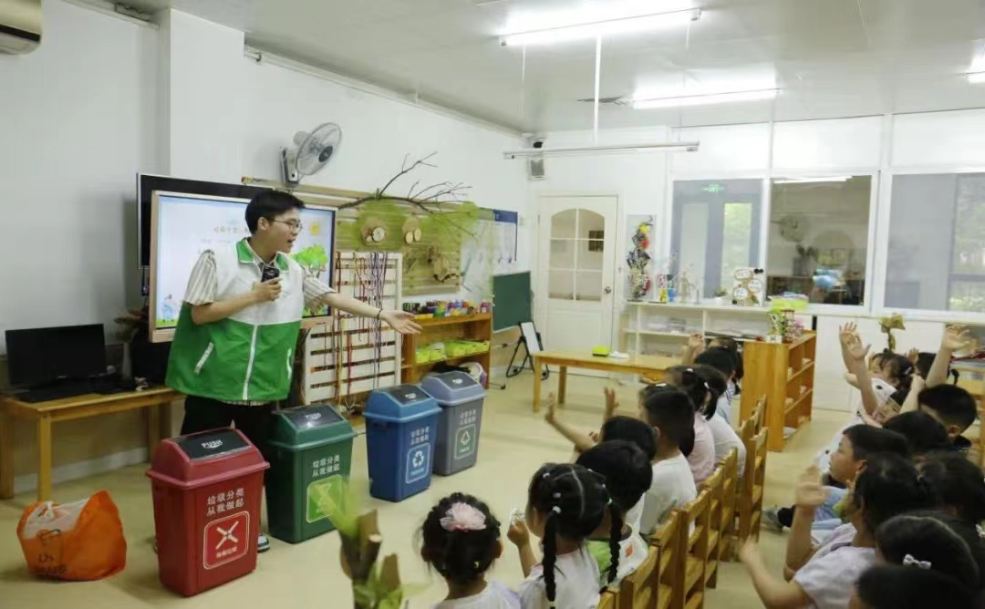 积玉桥街道积极寻找绿色力量,面向青少年开展绿色环保相关活动,广泛积累低碳宣传经验,加速绿色生活习惯养成。去年,康乐里社区邀约华中师范大学法律服务中心志愿服务队到社区幼儿园,通过演示互动的方式对小朋友们开展垃圾分类教育,把建设绿色中国的种子悄悄埋下。