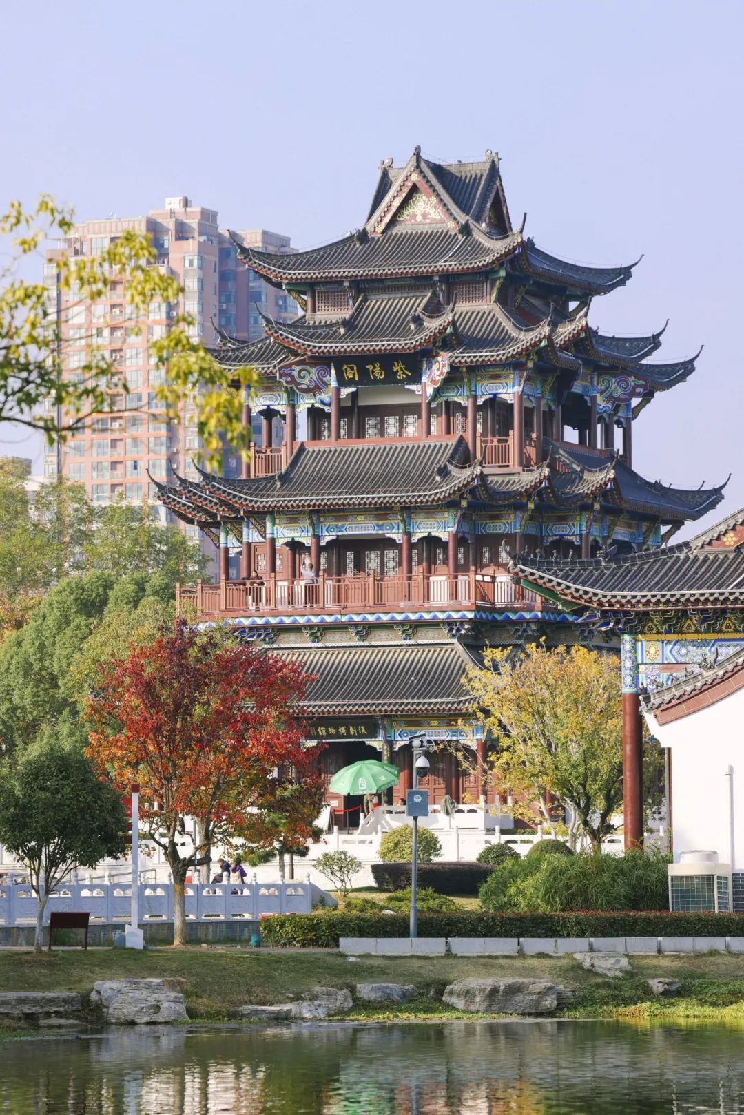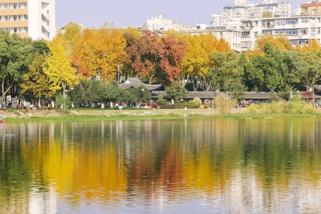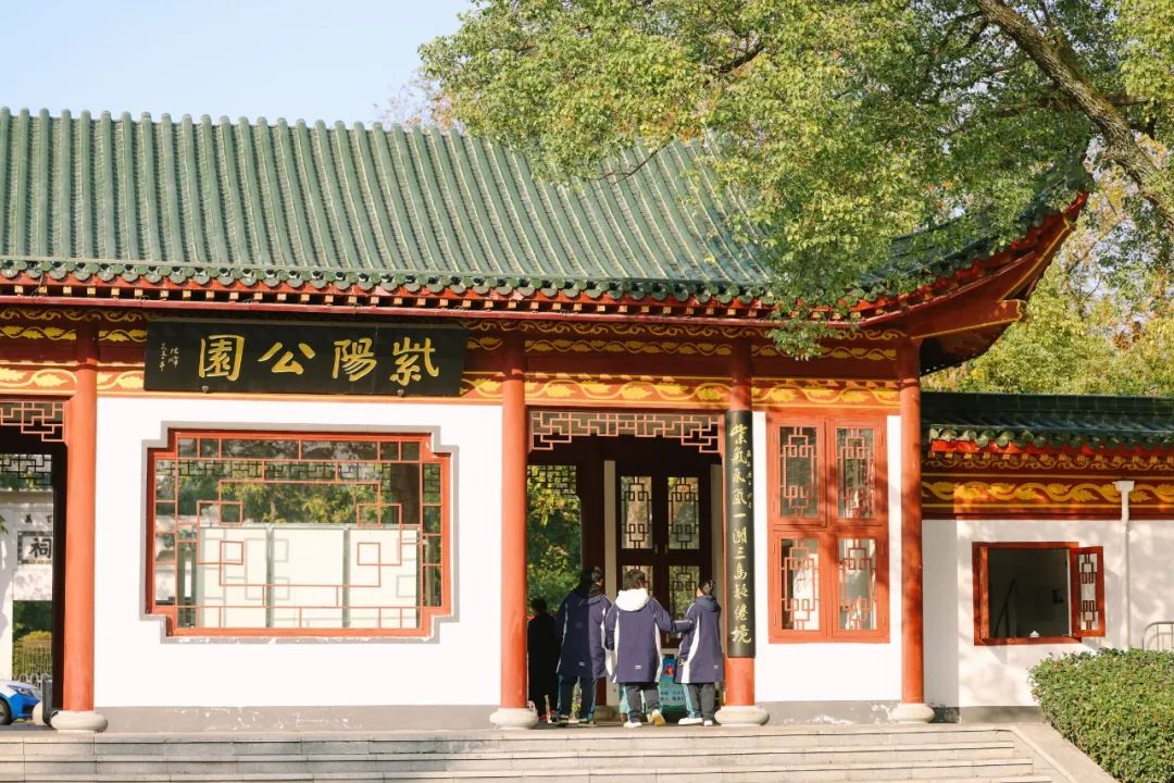 这里环境优美,绿树成荫,湖面波光粼粼,湖中有三座岛屿,呈“一池三山”江南园林格局。