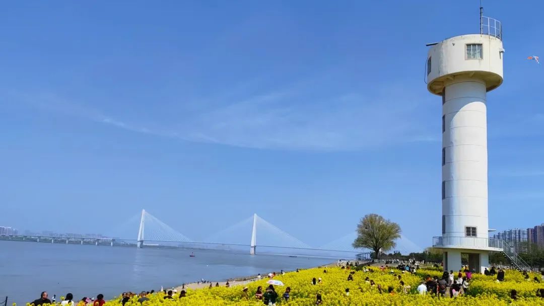 三月的江涛还裹挟着残冬的料峭,堤岸的梅花已替长江系上第一条粉白绸带。汽渡码头的白塔冒出一片“阳光海”,绿草坡打底,油菜花镶金边!遛弯大爷、拍照嬢嬢、追风筝的娃,全被染成了会走动的春天小太阳。一片桃花林,是春天种下的希望,江亭卧坡,休憩玩耍,待到来年桃花开放,春天的粉红将在游客的视网膜上按下。