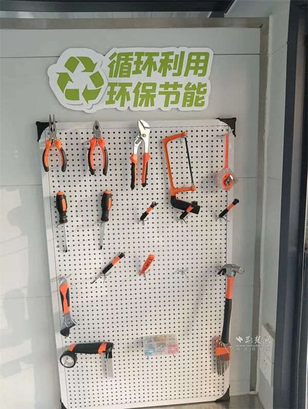 曾经的核酸亭也焕发新生,贴上新膜、挂上“堤”碳小屋招牌后,这里成了社区共享空间。工具架上摆放着扳手、螺丝刀等共享工具,展示柜里陈列着奶粉罐改造的多肉花盆、旧牛仔裤缝制的时尚挎包。不少居民自豪地说:“在我们这儿,垃圾能变宝藏!”