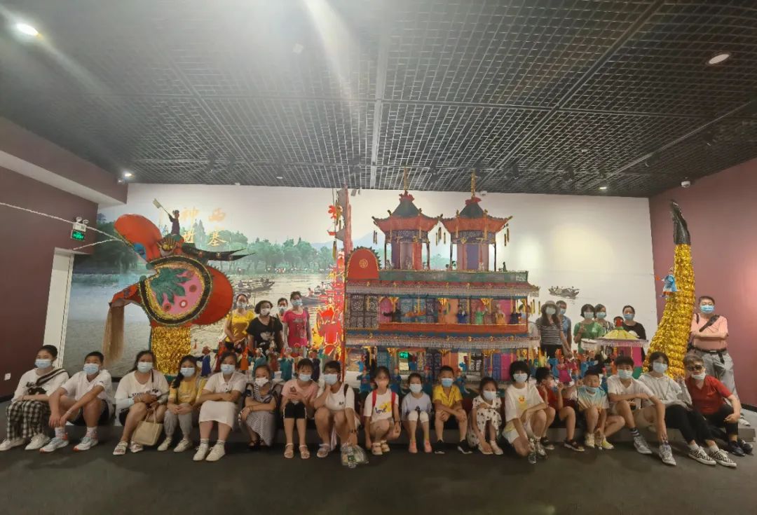 进入展厅,家长和小朋友立刻被一艘8米长的扎纸龙舟吸引视线。据湖北省群众艺术馆研究馆员吴志坚老师介绍,端午民俗进入联合国人类非物质文化遗产名录,湖北的西塞神舟会也因此享誉世界。这艘纸扎龙舟由湖北黄石非遗传承人亲手制作,“它和西塞神舟会上的龙舟造型是一样的,寓意送走瘟神,留下平安吉祥。”
