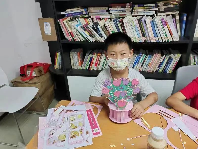 “老师,这一步做得对不对?”“老师,你看我的花盆漂亮吗?”“老师,我的花盆怎么立不住?”绘画手工课上气氛热烈,志愿者老师手把手指导孩子们制作“花盆贺卡”,打造沉浸式学习环境,面对一连串提问,老师通过讲解与演示、提问与回答、指导与引导相结合的方式,让绘画课程真正“活起来”,增强科普教育的感染力。
