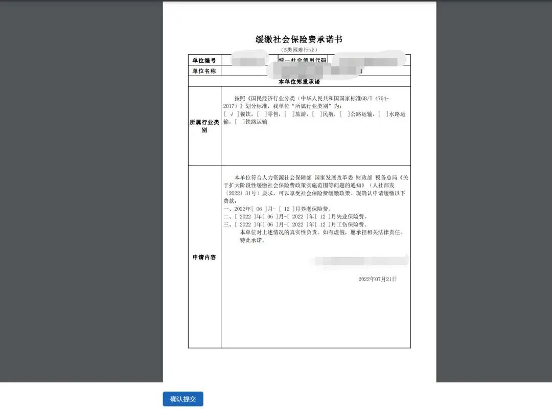 点击“保存”,生成“缓缴社会保险费承诺书”;