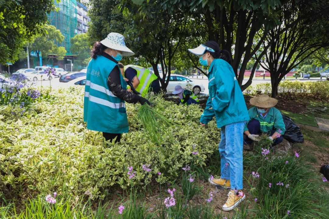 针对夏季闷热潮湿、病虫害多发的特点,王翠丽指导养护人员及时人工拔除绿地内杂草,避免杂草与园林植物争抢水肥、光照,减少病虫害的滋生,确保绿地景观效果及植物正常生长。