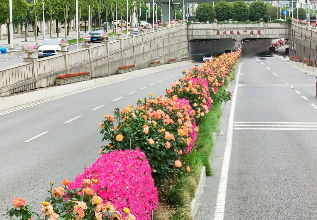 通过细化任务,现场指导,逐项落实各项精细养护工作,武昌区二环线高架和楚汉路地下通道等月季景观示范道路已实现多次开花,四季花开不断。