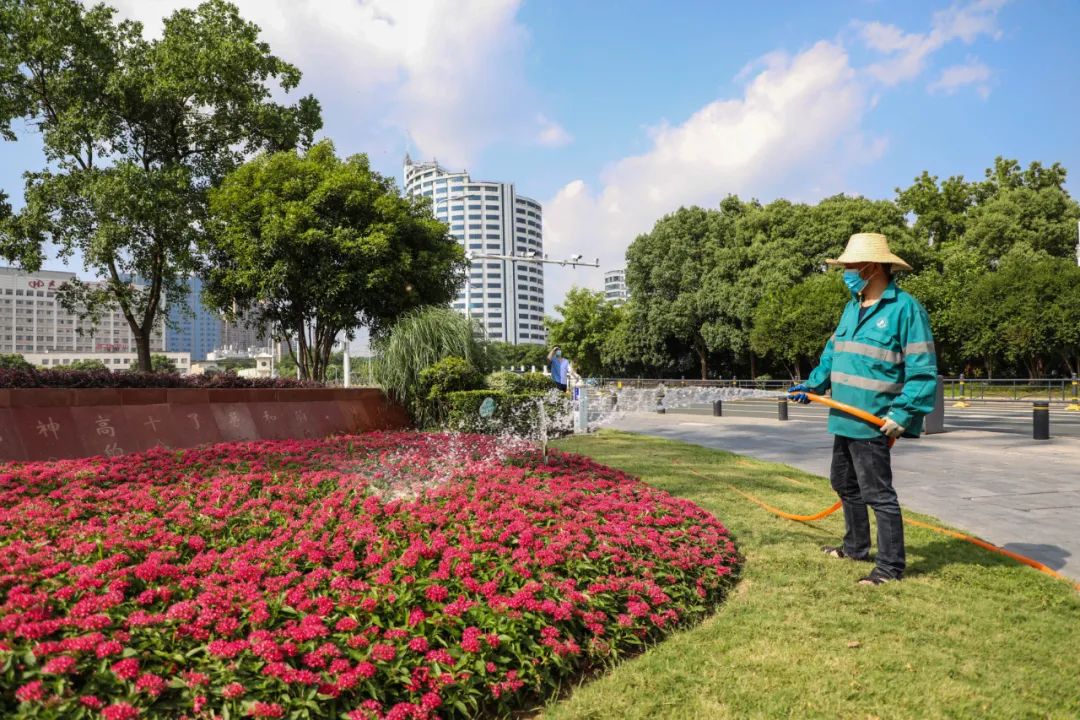 ▲白鹭街抗洪纪念碑时令草花带浇水此外,夏季高温,道路绿化带浇水抗旱也是一项重要工作。绿化队根据实践经验,因地制宜,利用水车、水栓、水泵、自动喷(滴)灌等多种方式为植物“解渴”。还要因时制宜,避开中午高温,选择在上午和晚上进行浇水作业,确保植物吸水效果。每到抗旱时期,王翠丽除白天正常开展工作外,晚上还要加班巡查绿化带浇水情况,确保苗木安全度夏。