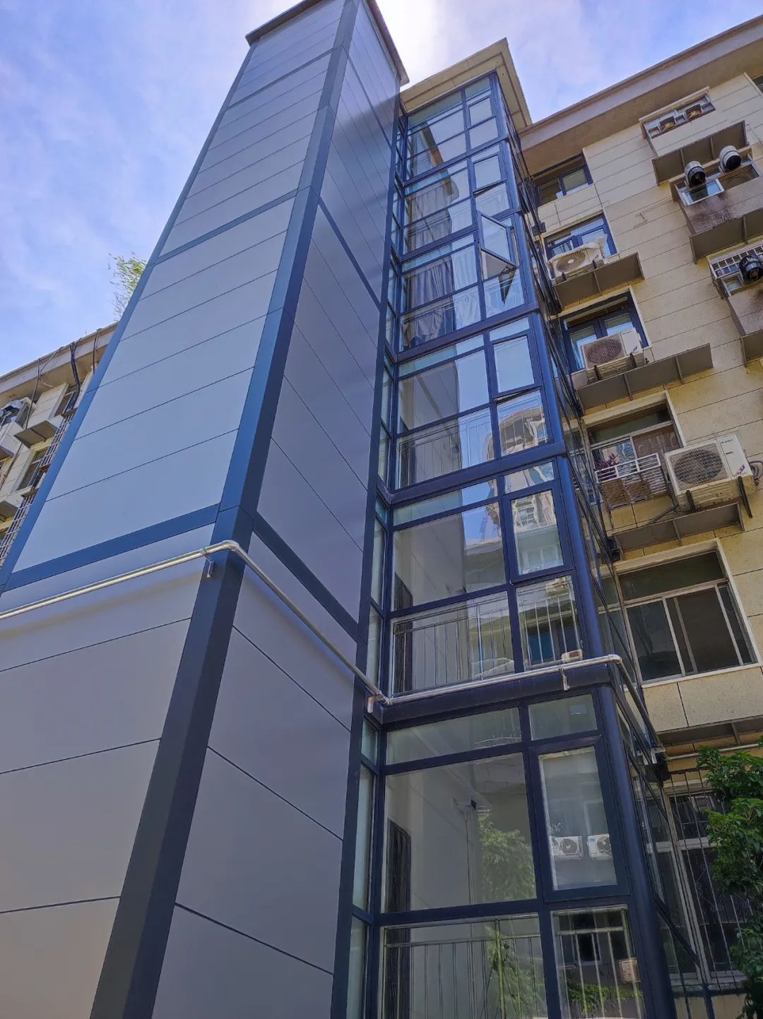 站在楼底,看着一根近20米高的“烟囱”矗立在小区单元楼前时,孙婆婆感叹:有电梯,真好!