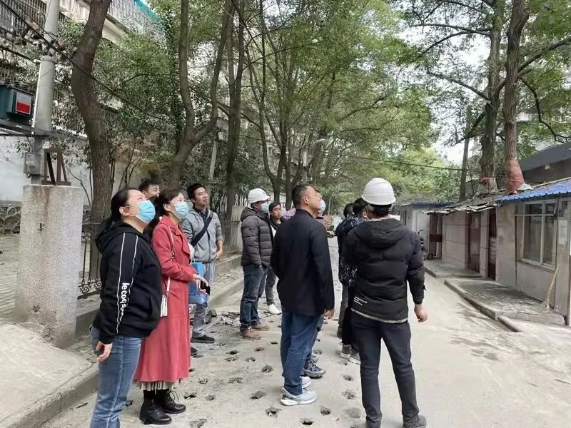 ▲“小巷院士”实地考察小区电动车车棚选址