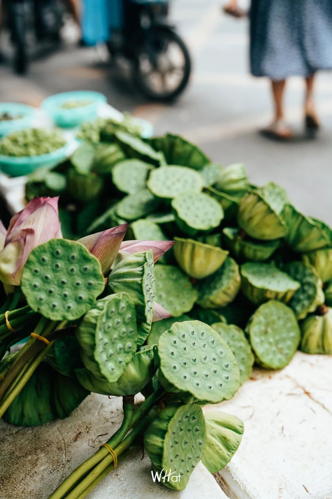 刚刚采摘的莲蓬和含苞待放的荷花娇艳欲滴,石头瓜和青提甜过初恋,绿色的叶子菜和瓜果青翠新鲜。