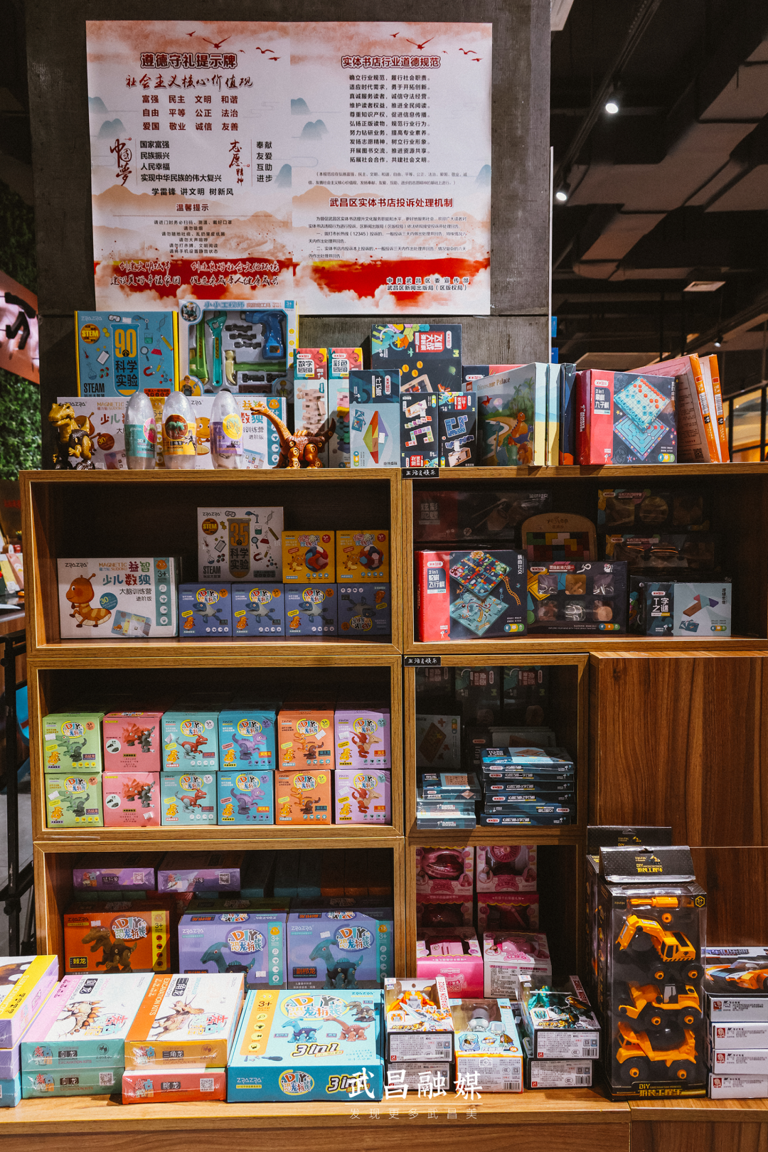 书城有图书近1万种,以文学、社科、生活、少儿类书籍为主,是湖北省新华书店(集团)有限公司在武汉着力打造的第一家集新空间、新业态、新体验于一体的新一代书城,是一个集图书、文创和生活美学等为一体的复合式文化空间。
