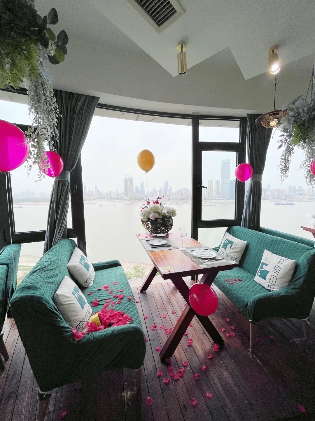 270°欣赏江滩美景,灯光下吧台的酒瓶折射出不同光芒,坐在柔软的沙发上,享受浪漫与美食的双重享受不同元素的碰撞。