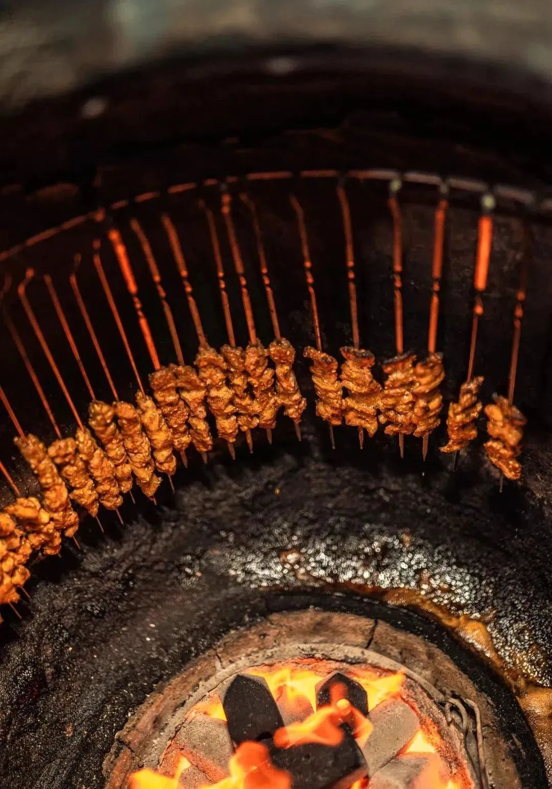 一串串羊肉五花肉牛肉,被放入炮炉的瞬间,就注定有了不羁的灵魂。有人说,烧烤的灵魂必须要用炭火烤,其实不然,炮炉里被焖烤过的灵魂一样有趣。