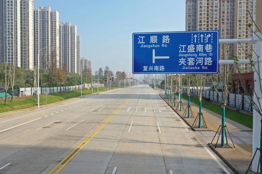 目前,江国路经三环线,南至陈家山闸一线的新武金堤路处于通车状态,江国路至江盛路段如今实现通车目标,正式通车也指日可待。