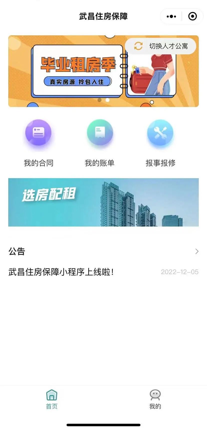 系统由移动端小程序和PC端后台两部分组成,武昌住房保障小程序主要为保障对象提供在线选房,在线报事报修,等服务,进一步优化租户的住房体验。