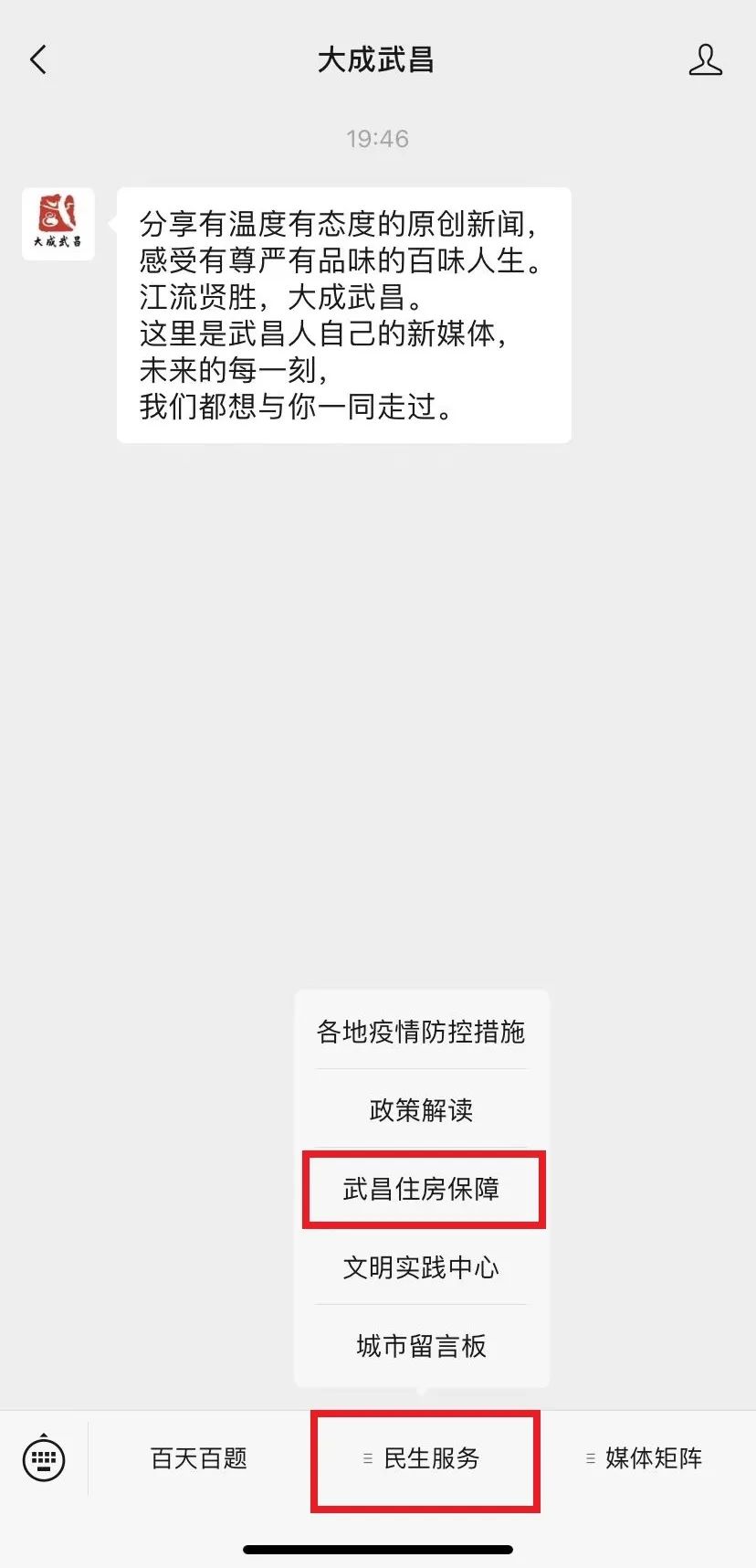 点击“民生服务”选择“武昌住房保障”栏目,进入小程序,选择所需便民服务即可