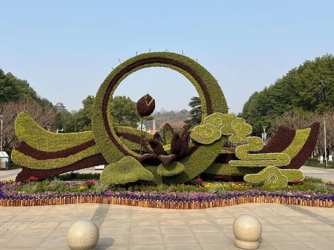 同时,在洪山广场、世纪广场、放鹰台、中山路昙华林路口、临江大道长江大桥桥头堡、省博物馆等地园林扎景及绿雕更换冬季植材,提升景观效果,确保花时令花卉、花漾街区全面绽放。