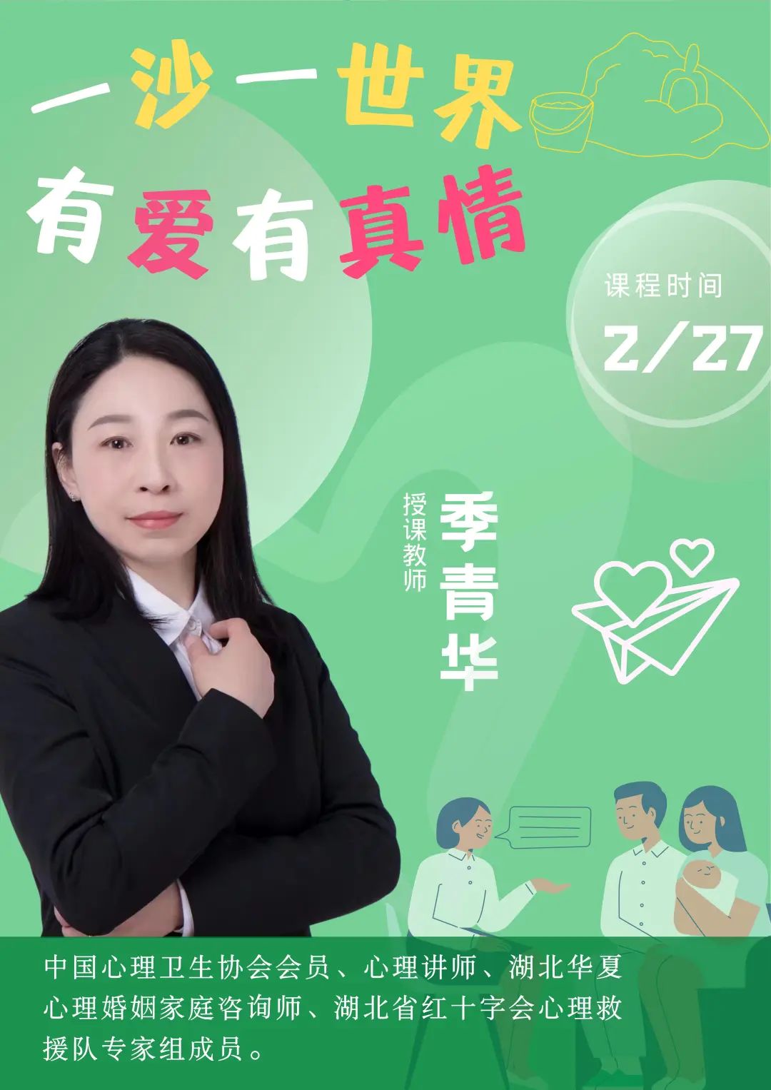 老师介绍:季青华,国家二级心理咨询师、中国心理卫生协会心理讲师、湖北省红十字会心理救援队专家组成员、武汉华夏心灵教育咨询有限公司婚姻家庭咨询师,从事心理咨询工作12年,个案时长6000小时,督导时长800小时。擅长婚恋咨询、个人情感咨询、婚姻家庭矛盾调解、危机干预等。