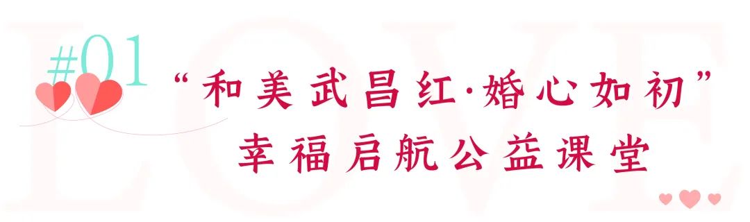 为持续推进婚俗领域移风易俗,培育良好婚俗文化新氛围,武昌区将依托“武昌区婚姻家庭名师工作室”平台,在暖风拂面的“爱之月”组织开设一系列“和美武昌红”婚姻家庭公益课堂及惠民咨询服务,不断提升居民幸福感和获得感。