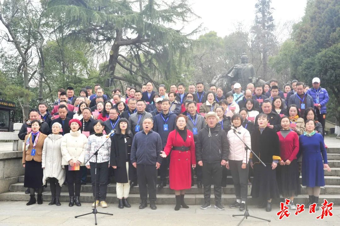 讲座结束后,100余名市、区政协委员前往黄鹤楼公园岳飞广场,齐诵《满江红·登黄鹤楼有感》《满江红·怒发冲冠》。