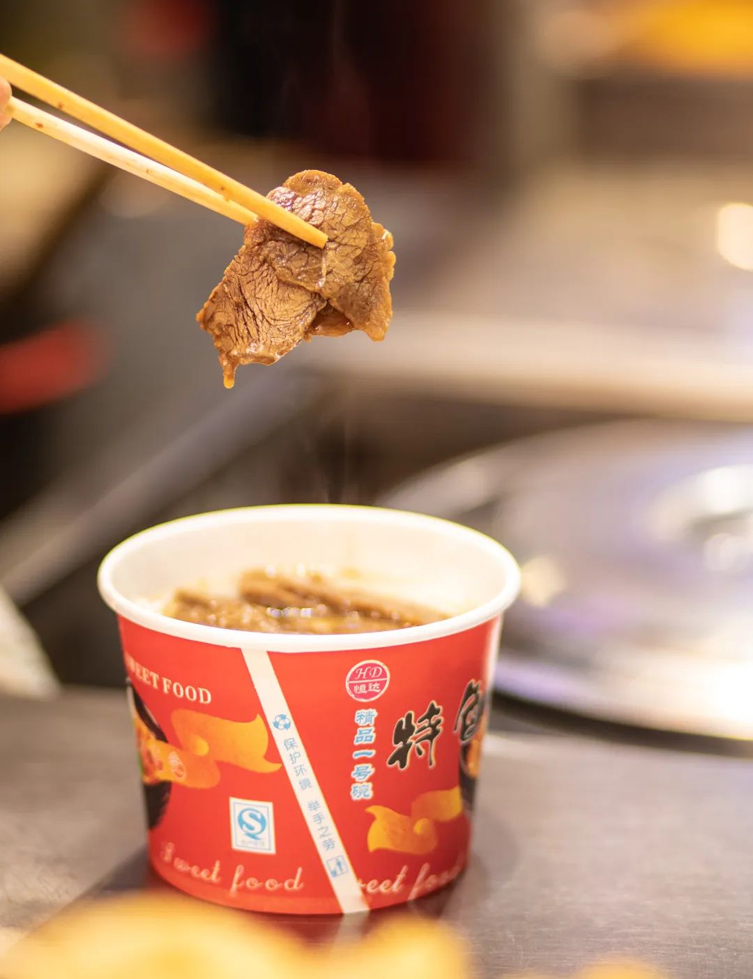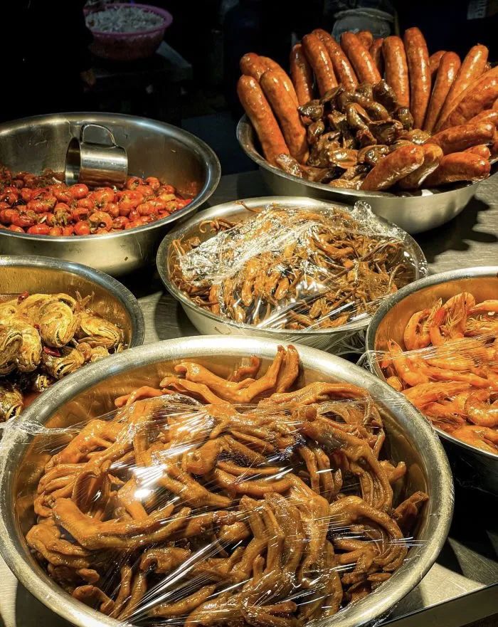店内除了粉面之外,还有一大盆香气扑鼻的卤菜,鸡蛋、豆干、卤藕、猪蹄随心挑选,简直是卤味爱好者的快乐源泉!