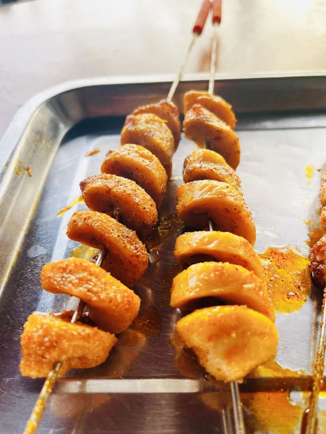 无烧烤不青春。每到放学的时间点就会有学生光临。吃面筋的时候,会发现竟然是以前小推车上卖的面筋味道。