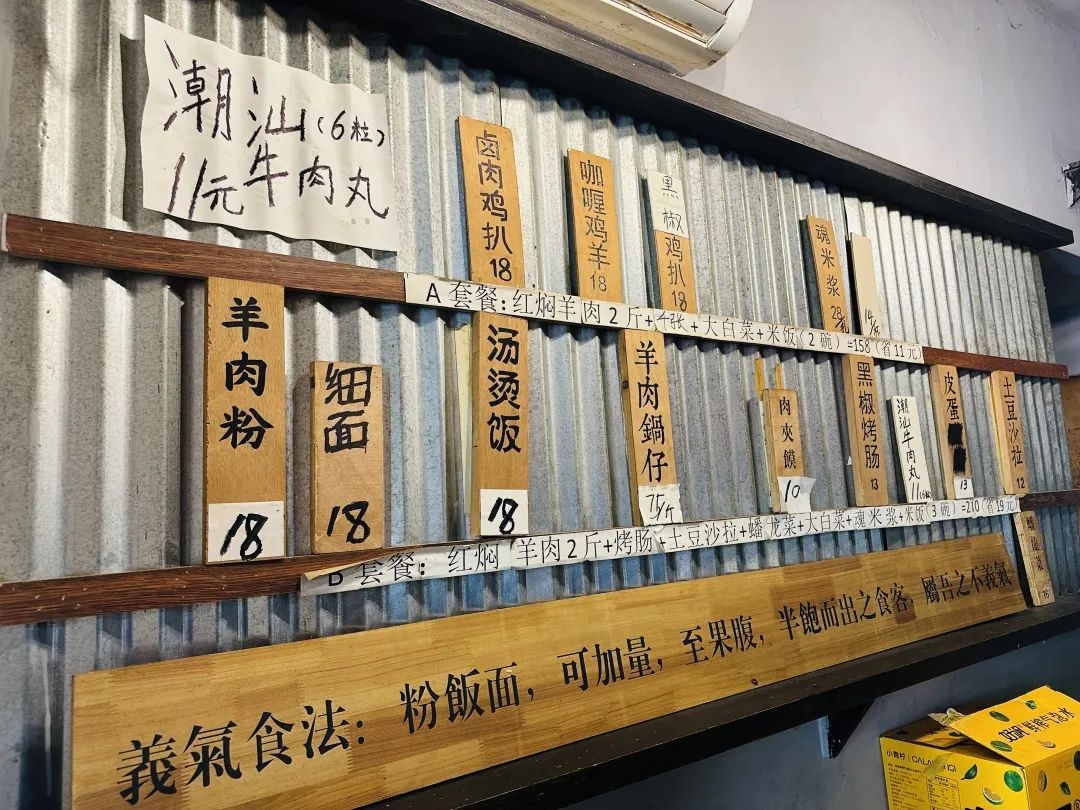 这家羊肉粉店的操作台上挂满了“义气”,常有人从外地专门过来觅食。据说店主很佛系,开门看“天气”,打卡可能得碰运气了。