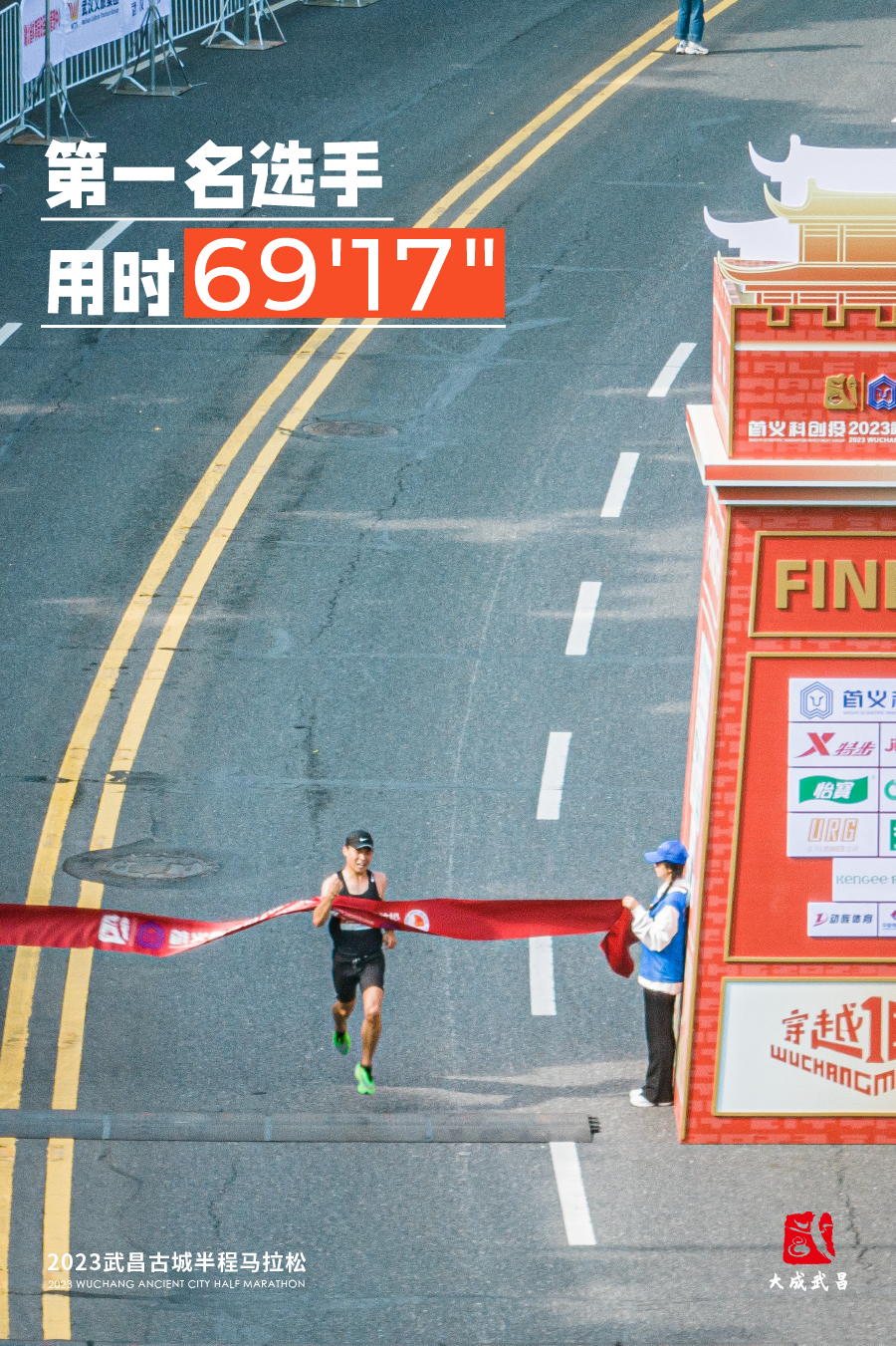 8点39分,半马男子组第一名冲过终点线,他是吴清宇,华中师范大学的学生,他很熟悉这条赛道,周末经常去逛汉街。半马女子组第一是熊娟,她说本次比赛最让她回味的,是沿线热情的武昌街坊。