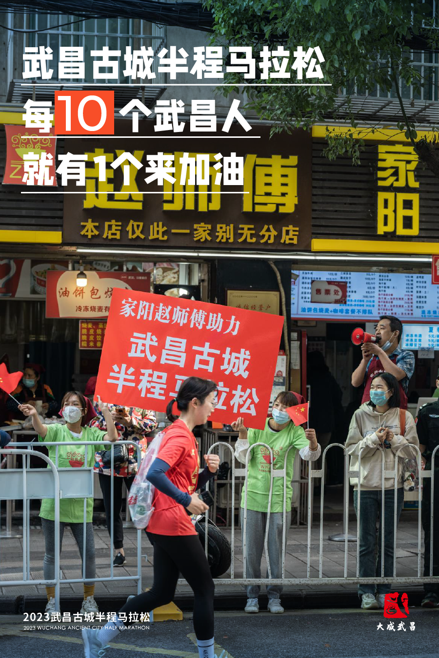 “在大大的武昌城里跑呀跑呀跑,跑过了汉阳门就可以看大桥。”孩子们手舞足蹈唱起改编网红歌给选手加油,当日,数十万人赶来围观。