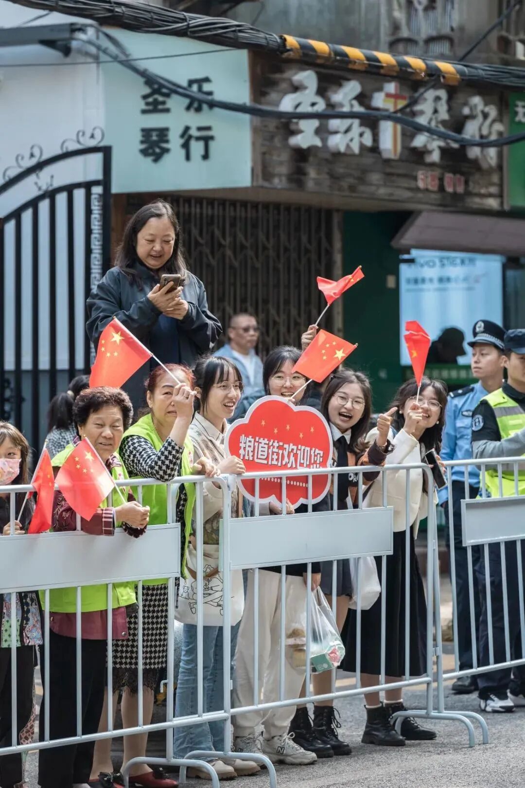 街坊推开窗户伸出脑袋,粮道街,一个穿着白背心的爹爹在阳台浇花,他高举水壶,“要多来我们这里玩啊!”