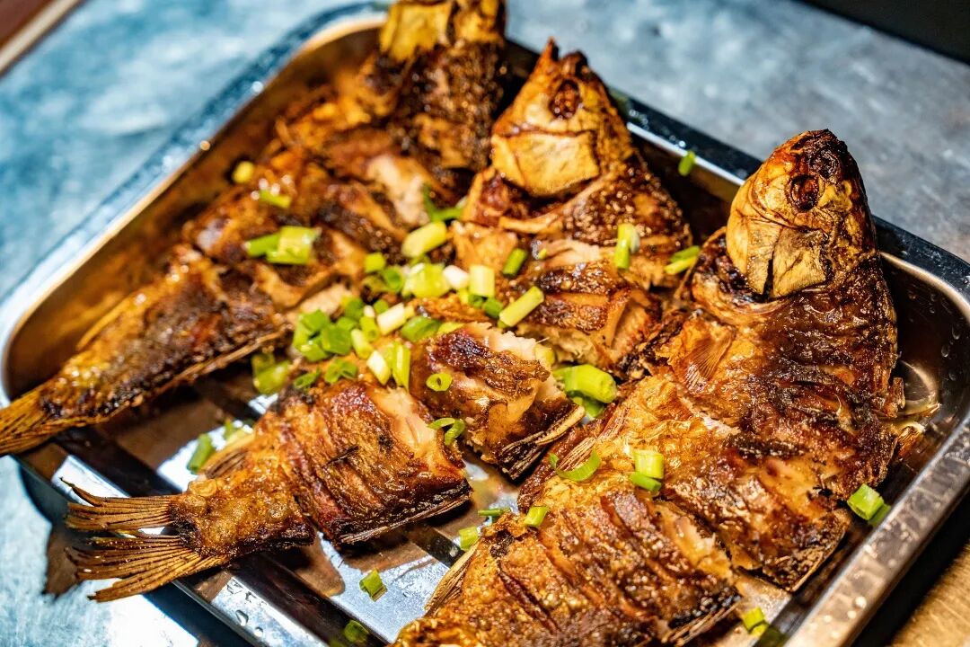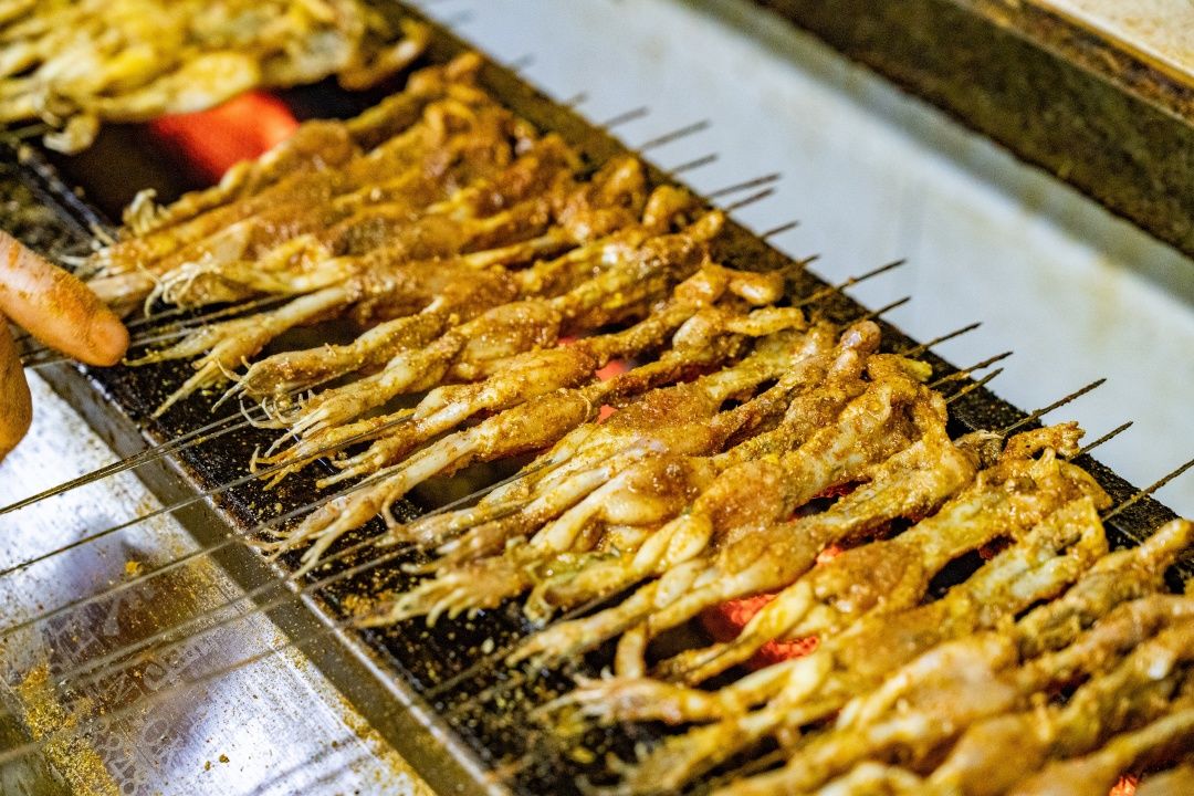 必点的烤虾球,选用4钱大小的清水活虾,虾壳烤到焦脆,虾肉仍旧水嫩;分3次撒上调味,热力循序渐进地将调味满满渗进虾里,光是闻就已经受不了。招牌跳跳蛙和精品烤鳝鱼也是不遑多让,石蛙肥美,蛋白质含量丰富,鳝鱼现杀现烤,讲究一个鲜字。反正啊,承载几代人味蕾记忆的毛毛,肯定不会让你失望。