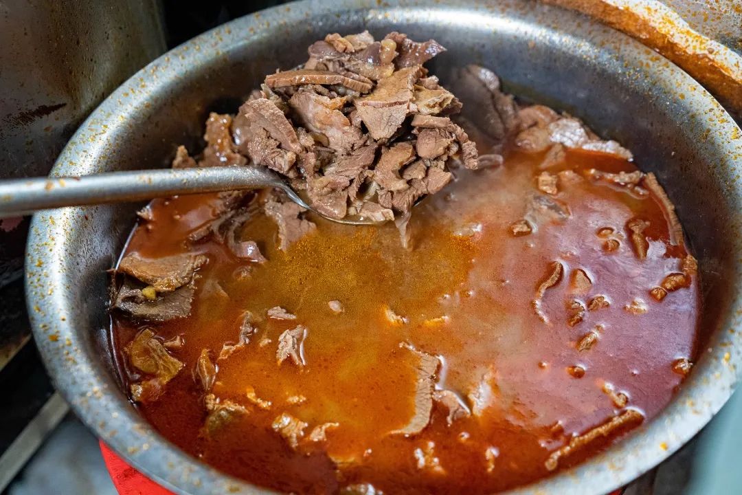 老板全部选用上好的牛腱子肉,一般是大火熬开,小火慢慢熬,卤够三个小时,熬的就是汤鲜味美。